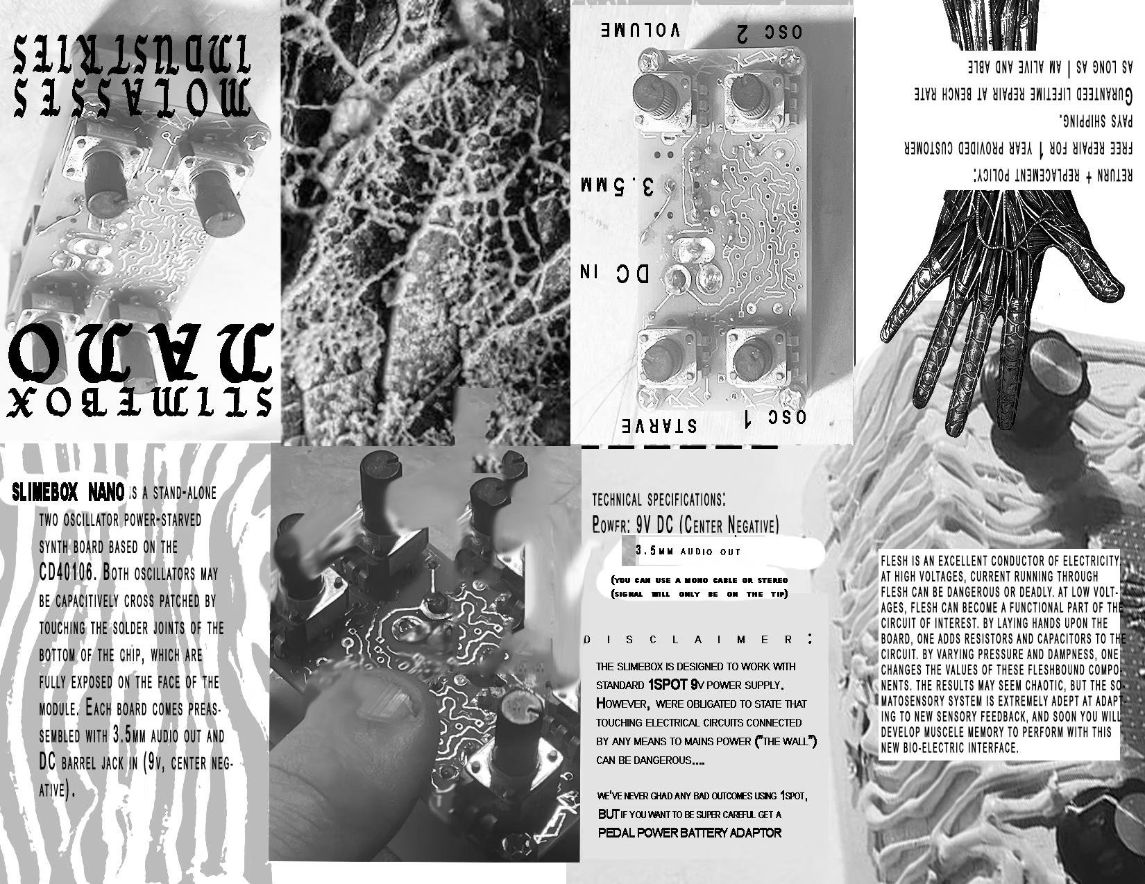 Shop Categories: All synthesizers audio devices diy pcb kit merch All | synthesizers | audio devices | diy pcb kit | merch | Dysynthesis - Touch Enabled Fuzz Pedal $175.00 Fingertrap: Cracklebox Touch Synthesizer $60.00 Slimebox Nano Starved Drone Synth $60.00 CPL Crosstalk Touch Synthesizer mk2 $195.00 Fingertrap DIY PCB $20.00 Heron Solar Sounder PCB Kit $35.00 MOLASSES INDUSTRIES T SHIRT $15.00 KEEP HONKING Im Listening to HONKING bumper sticker $7.00 Ball Bearing Roller $30.00 Sold out